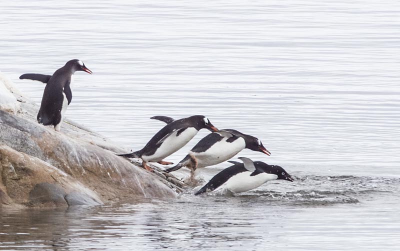 But after three and a half days of overwhelming beauty in bright light and calm seas an astonishing discussion could be heard during lunch time. Basically it was the photographers who launched it. Looking out on the extremely bright white glacier surfaces and snow covered areas all of a sudden they created somehow opposite sceneries. For example an icy gale with penguins that can hardly stand in the wind, with their contours being blurred by drifting snow. They themselves on their bellies and getting the perfect shots of it.
