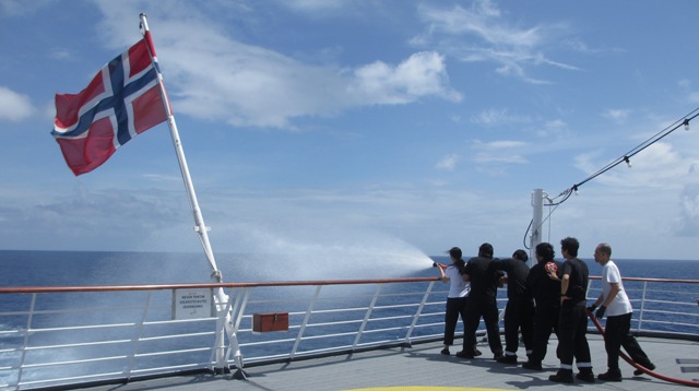 It is not just a time for relaxation here on board. The normal work continuous and there are quite a few trainings to attend. The fire teams practise, there are drills and our doctor Alexander and nurse Cecilia have trainings each day for CPR and first aid.