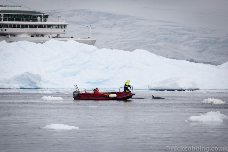 During the night MV FRAM anchored in front of Danco Harbor to be near to our campers, but in the early morning hours the ship sailed into the Errera Channel to go whale watching – and whales we saw!  We found a group of Minke and many Humpback Whales and just enjoyed watching them play, feed and dive.